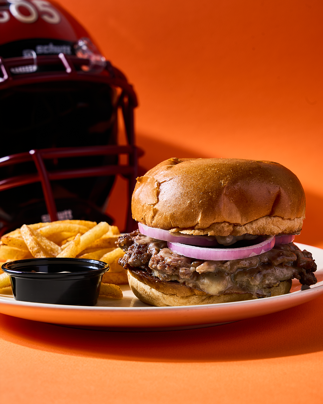 Nuestra Hamburguesa Smash Trufada es: doble carne smash, queso provolone, mayonesa de trufa y pepinillos, pan brioche, cebolla fresca. Con tu elección de papas (doradas, francesas, espiral)