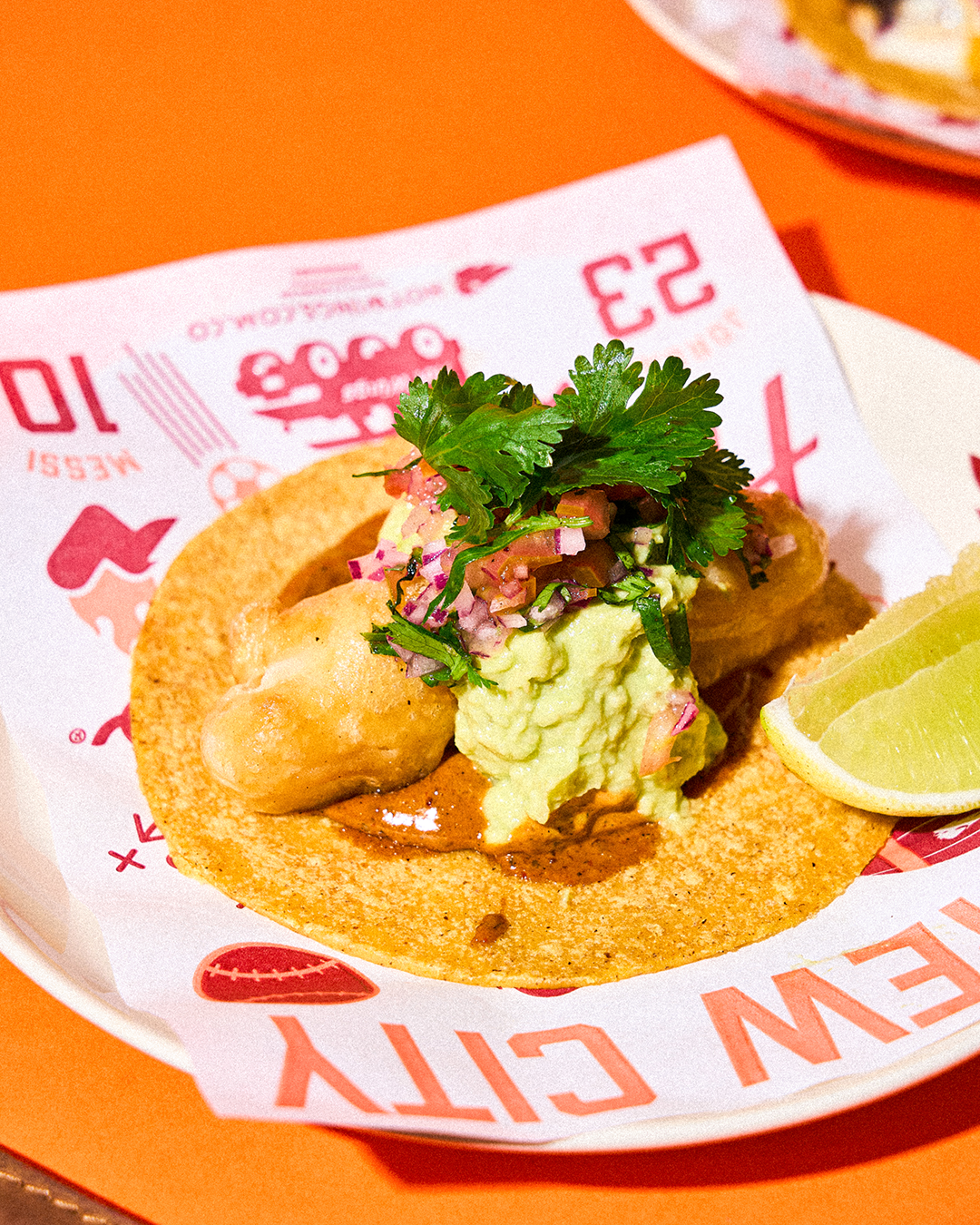 Nuestro Taco de Pescado es Pesca tempurizada, tortilla de maíz, guacamole, pico de gallo y mayo chipotle